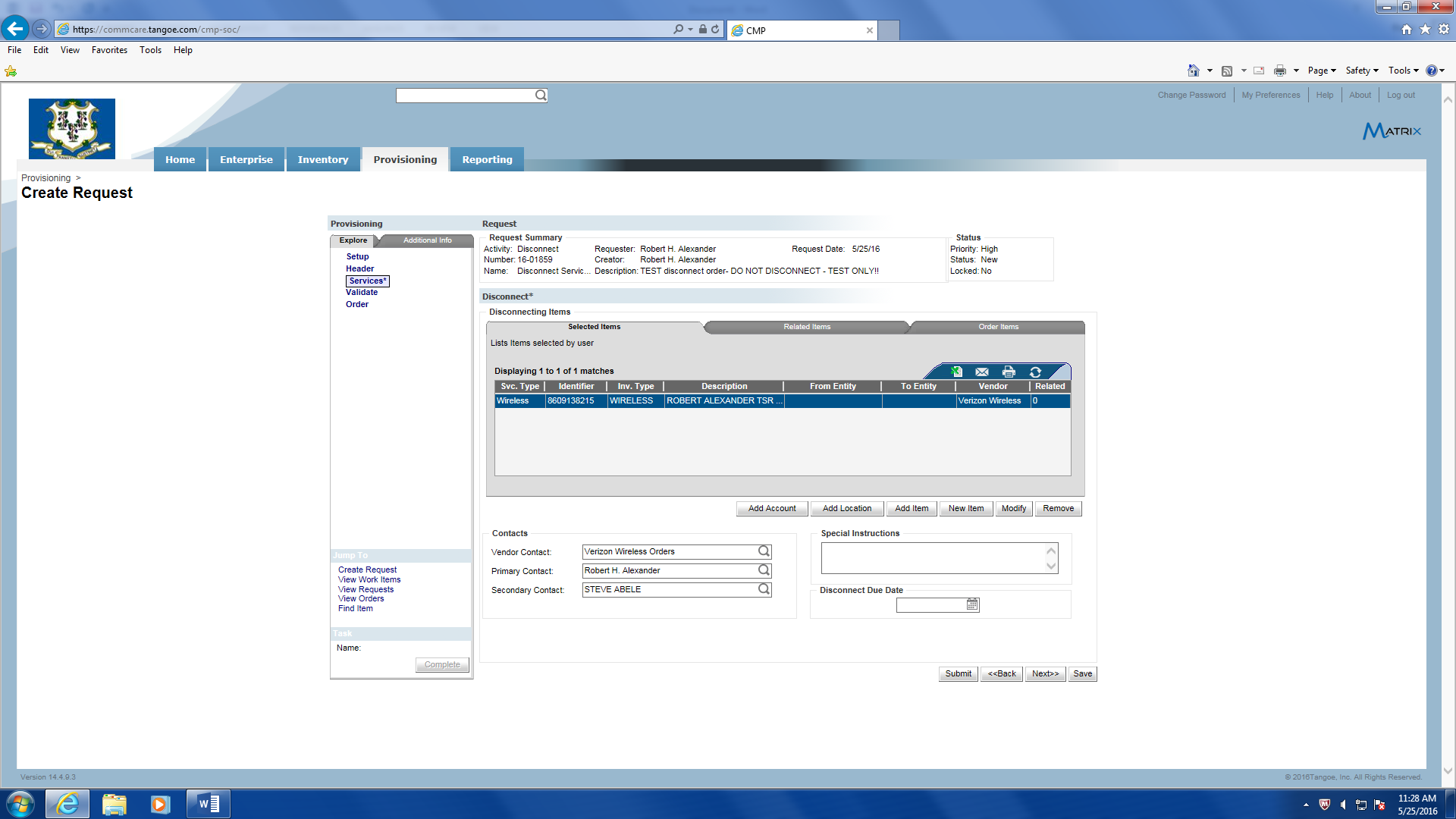 - Note: If multiple items are being disconnected you need to enter contact info and disconnect dates for each of the items.
