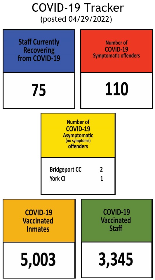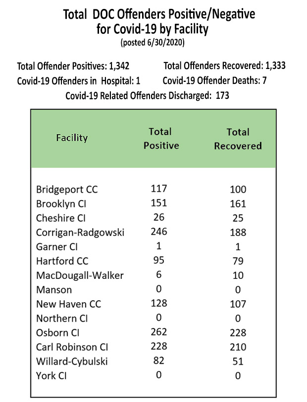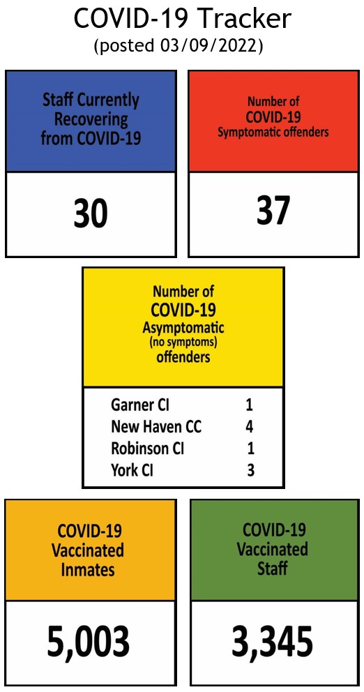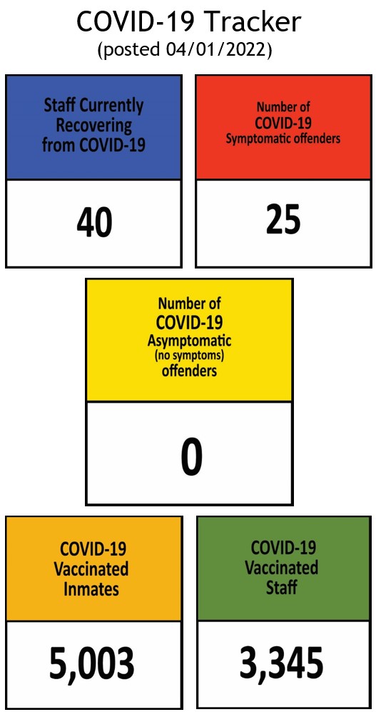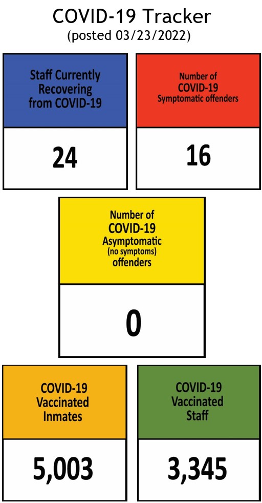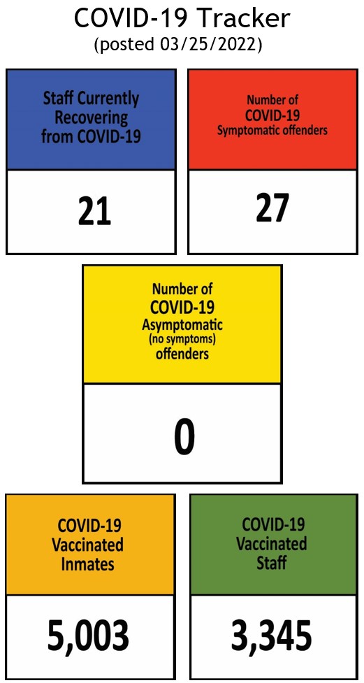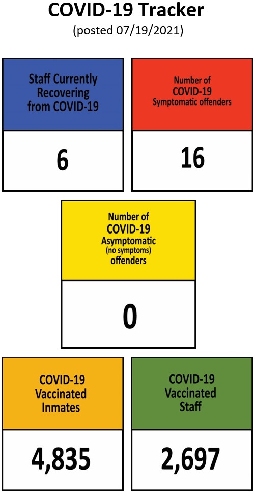 The Information below regarding Covid-19 Positives/Recovered Offenders by Facility will be updated on a weekly basis.