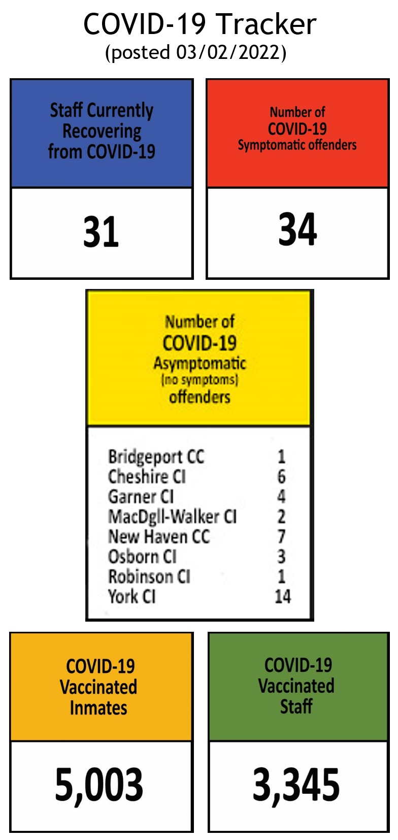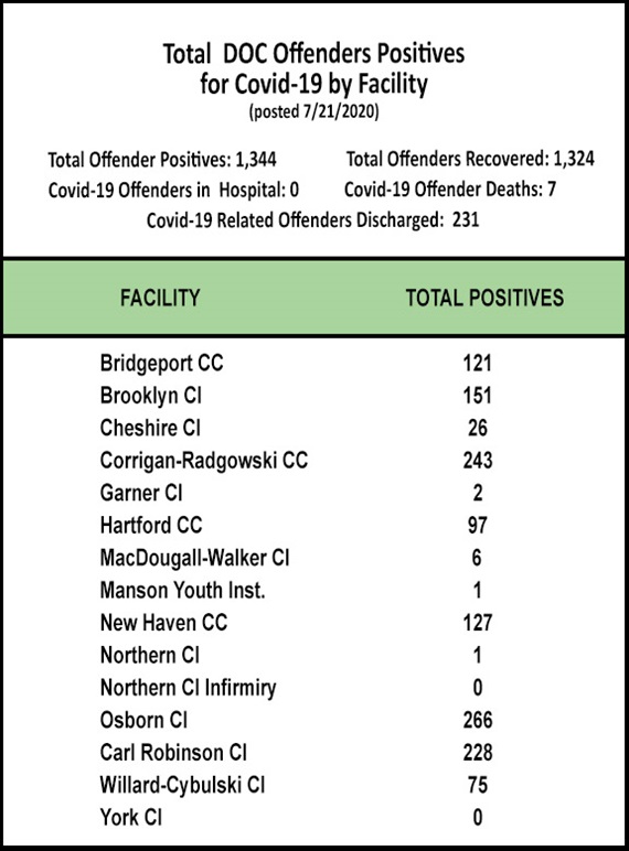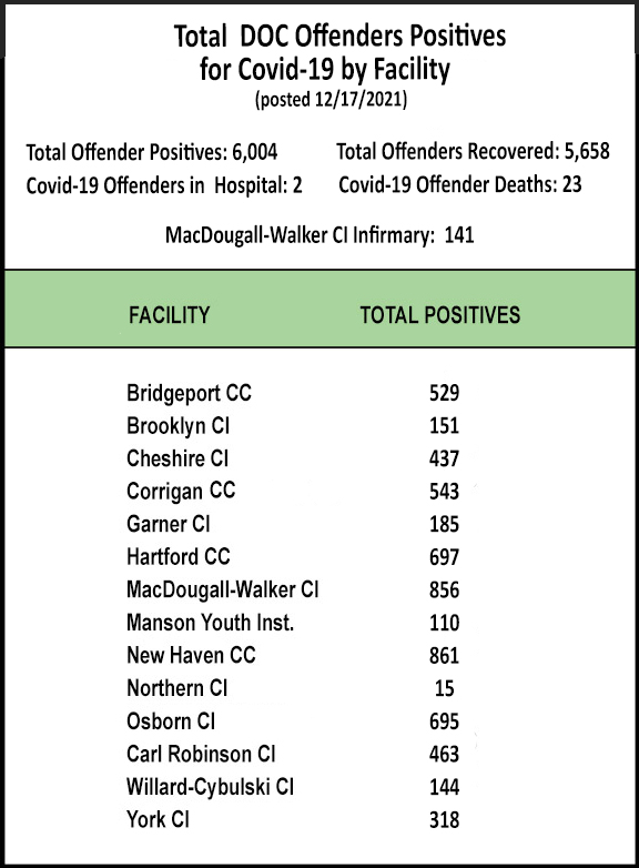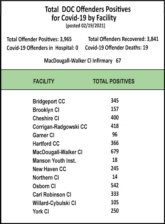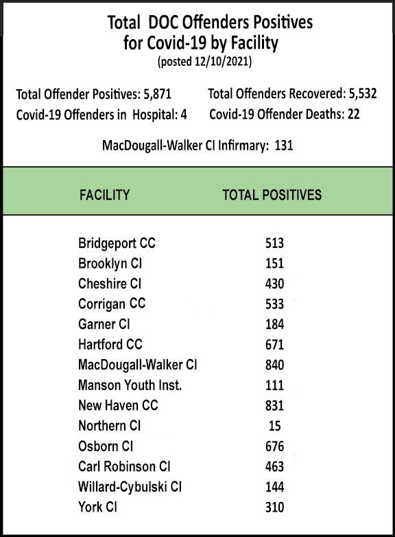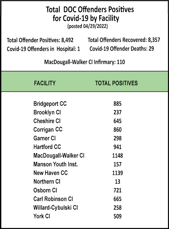 The Information below regarding Covid-19 Positives/Recovered Offenders by Facility will be updated on a weekly basis.