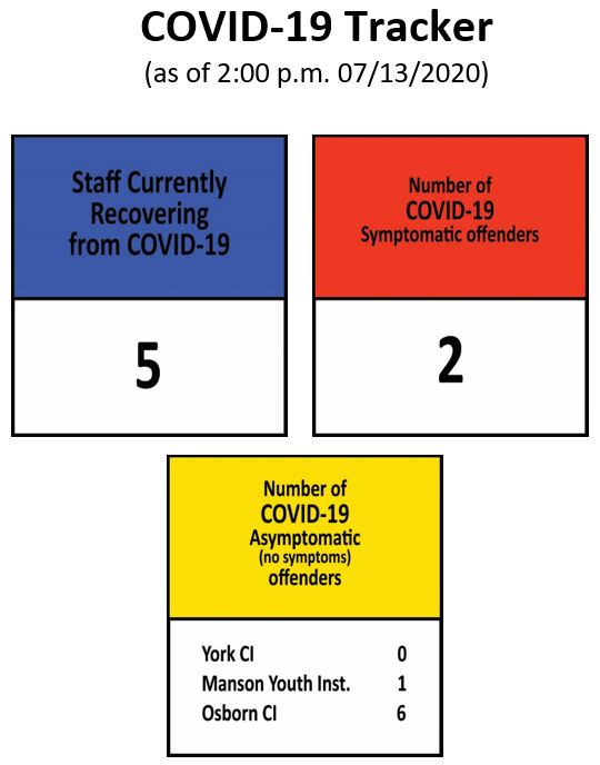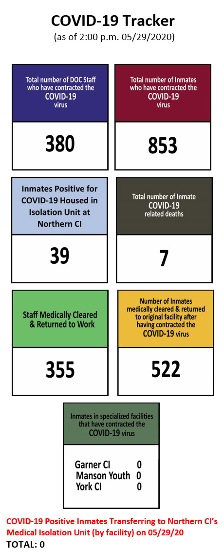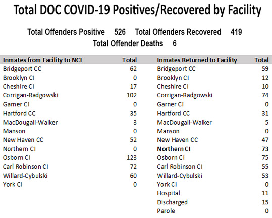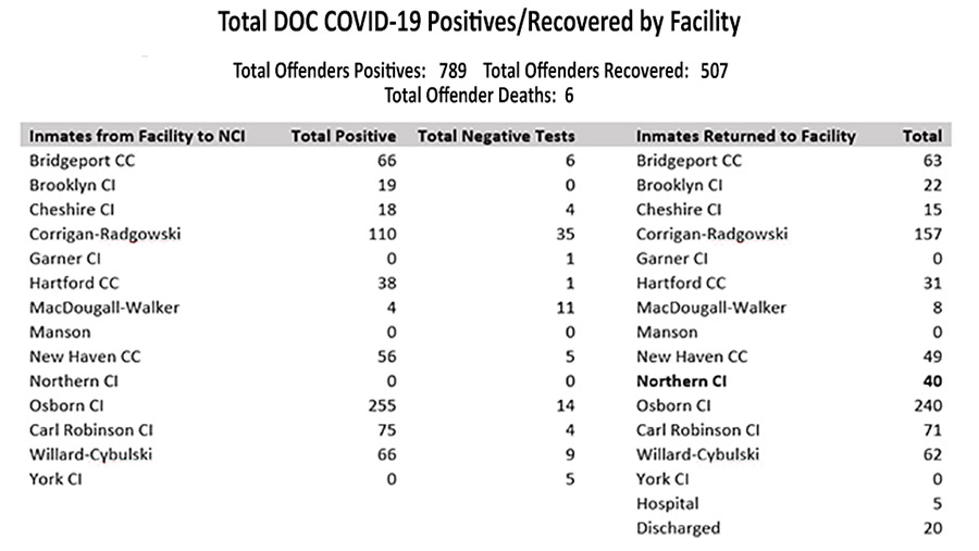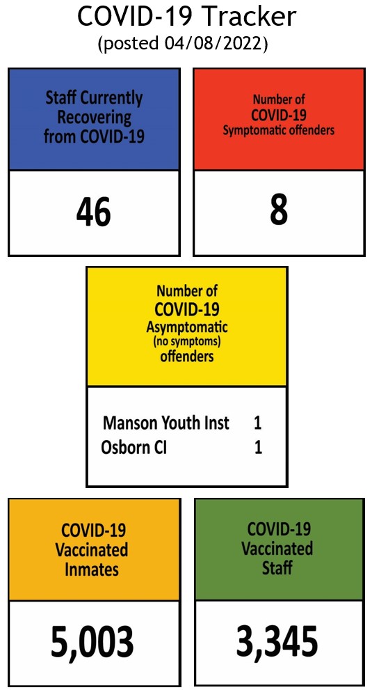 Effective April 8, 2020 all offenders who are positive for the COVID-19 virus have been transferred to an isolation unit at the Northern Correctional Institution