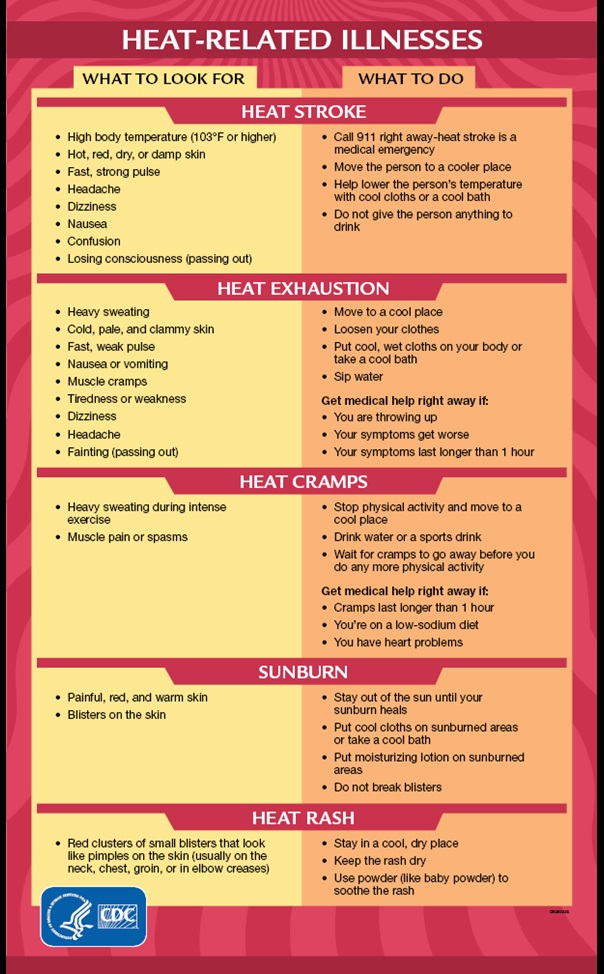 Everyone can suffer a heat-related illness during extreme heat, especially those working outdoors or those engaged in physical activities/sports.