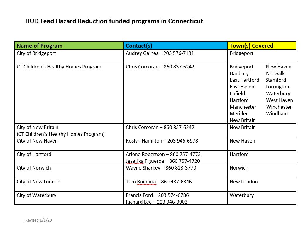 CT.gov Home dph Current: HUD Programs in CT funded for Lead Hazard Remediation Services and Programs Regulation & Licensure Vital Records Newsroom DPH Advertising and Communications Videos Topics A-Z Statistics and Research Forms Publications Boards and Commission Meeting Agendas, Minutes & Videos Administrative Hearings Calendar Search Department of Public Health Search the current Agency with a Keyword Filtered Topic Search Click on image for complete list.