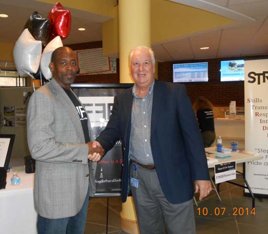 Tomzcak takes a photo with filmmaker Ulysses “Butch” Slaughter at the “Faces Of Our Fathers” Film Festival hosted by Quinebaug Valley Community College. |