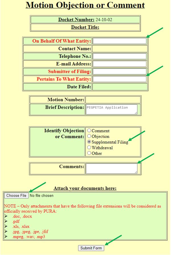 For more information, visit Make An Electronic Filing, or contact PURA’s Executive Secretary at PURA.ExecutiveSecretary@ct.gov.