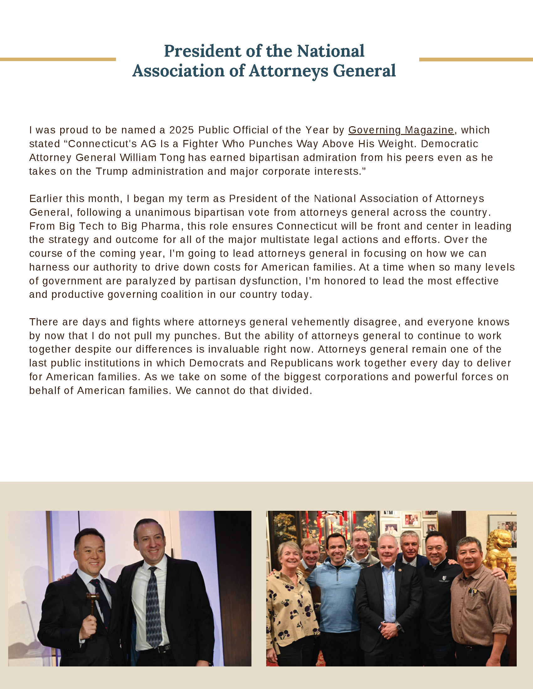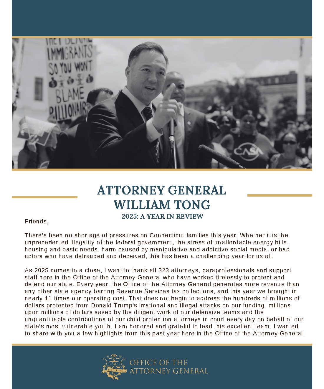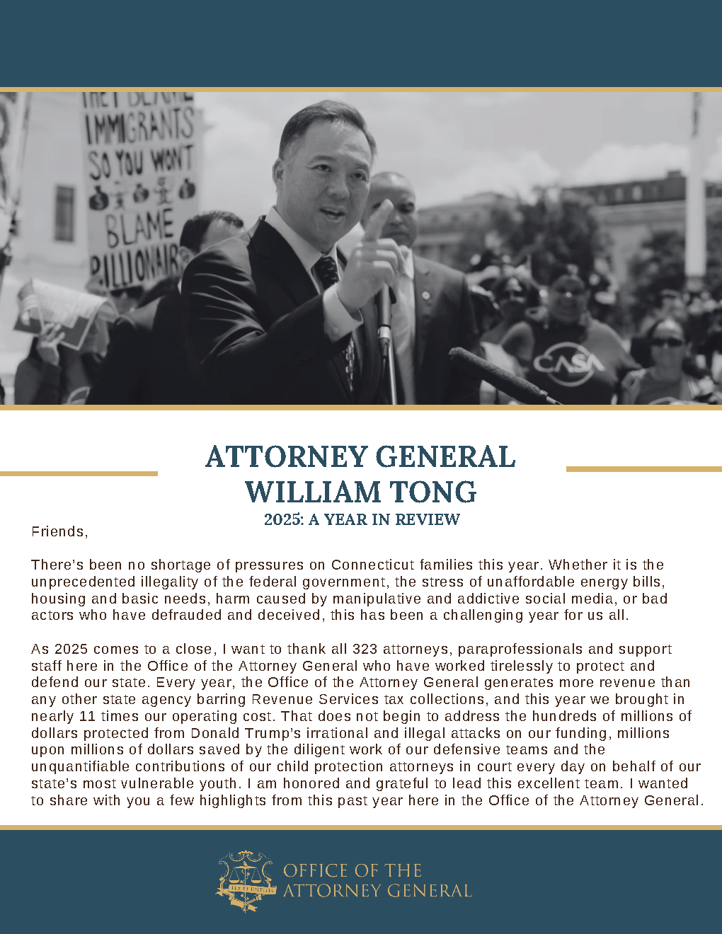 A Message from Attorney General William Tong: 2025 A Year in Review