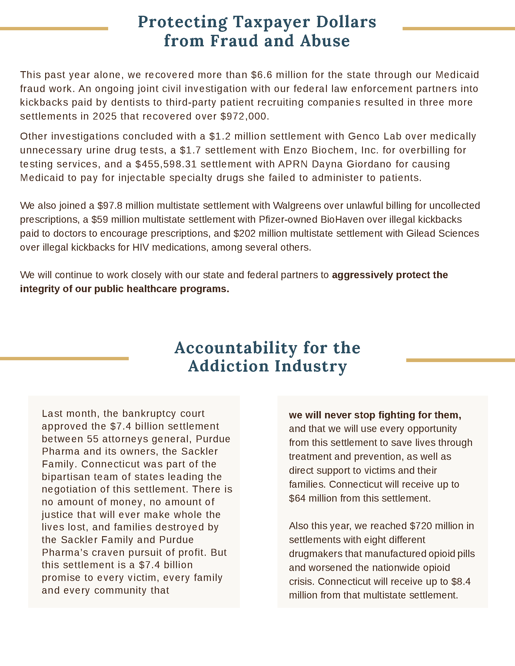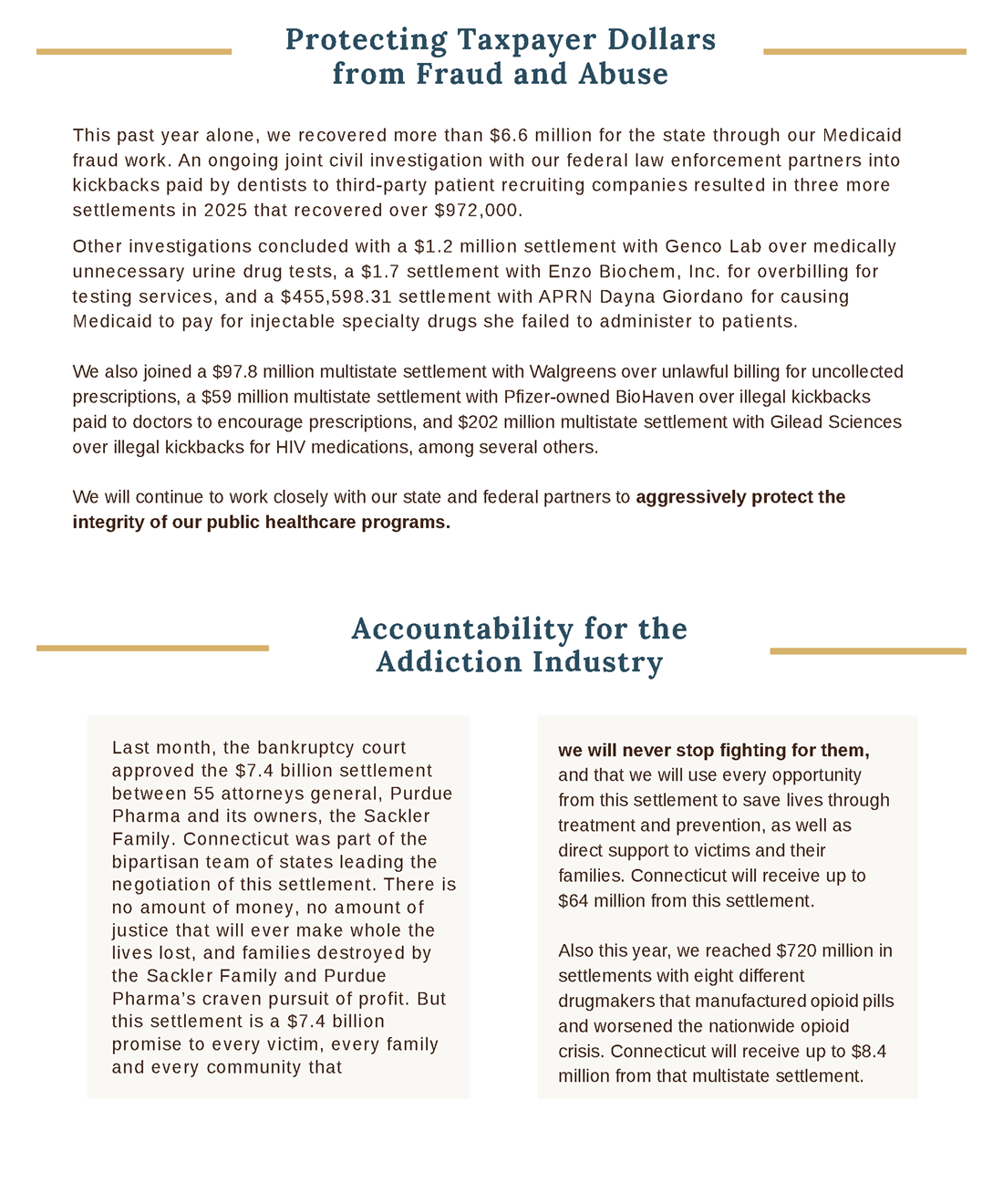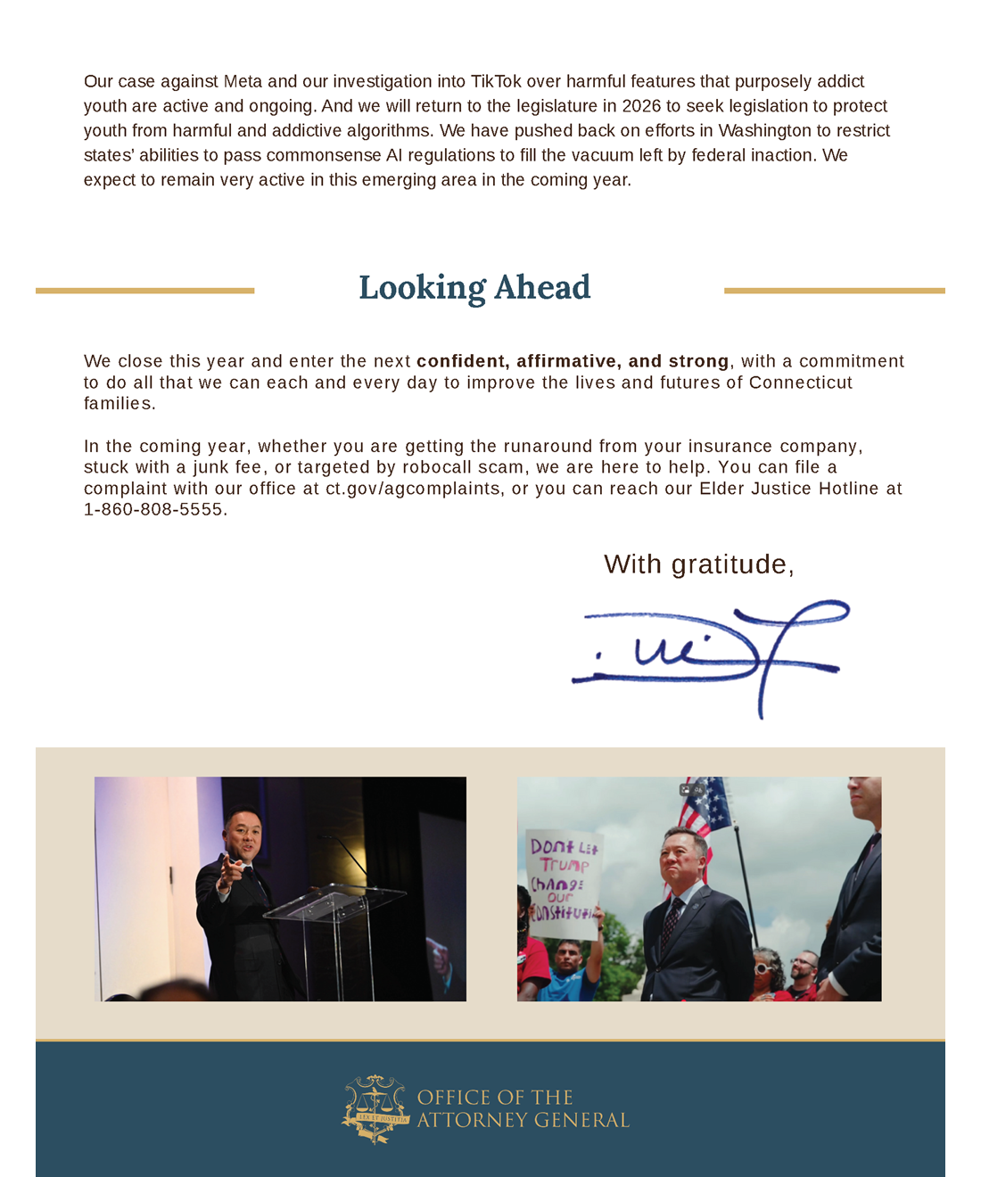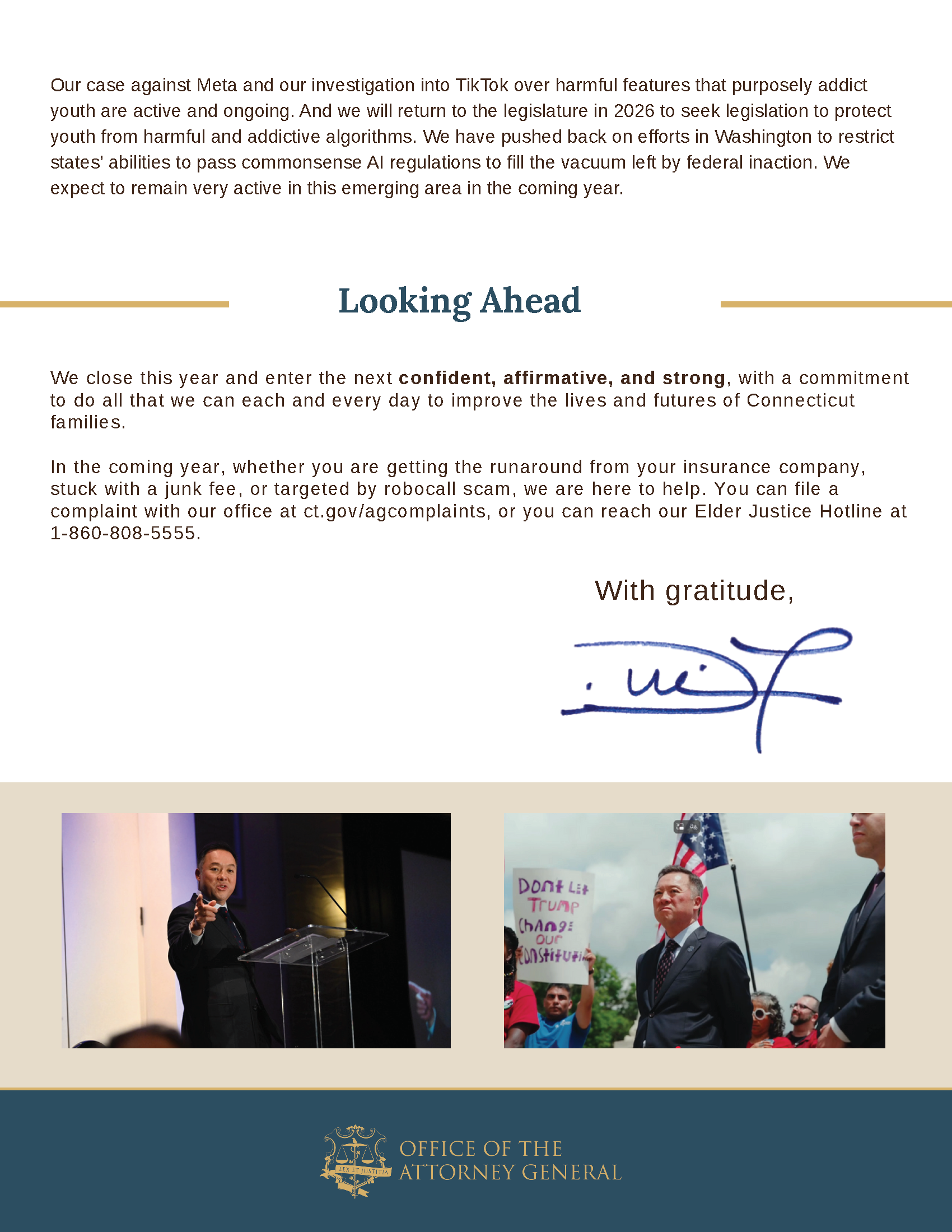 A Message from Attorney General William Tong: 2025 A Year in Review