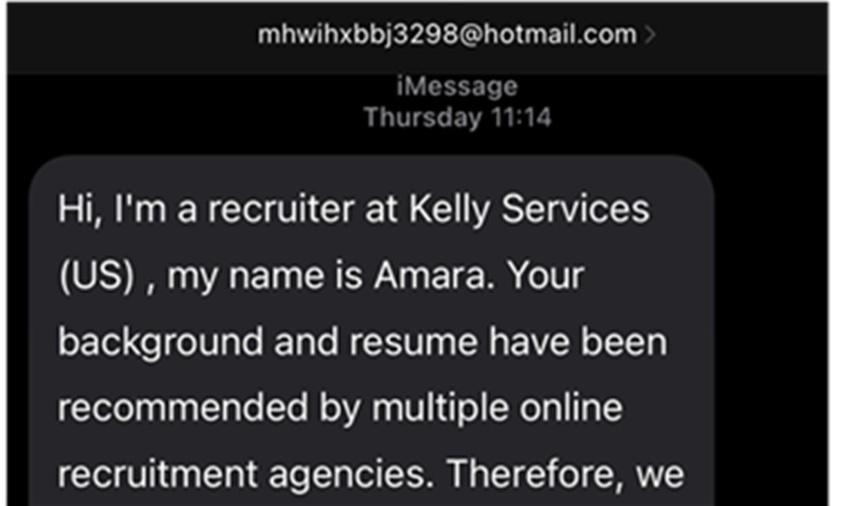 Hallmarks of scam job texts and emails include: