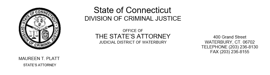 (Waterbury, CT) – Maureen T. Platt, State’s Attorney for the Waterbury Judicial District, today announced that the Honorable Joseph Schwartz on January 11, 2024 sentenced Michael Mark, age 35, of Waterbury, to 28 years in prison for the 2010 murder of Arnaldo Gonzalez, age 43, in Waterbury.
