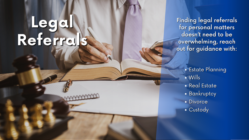 Receive referrals for personal legal matters including estate planning, wills, real estate, bankruptcy, divorce, custody, and more.