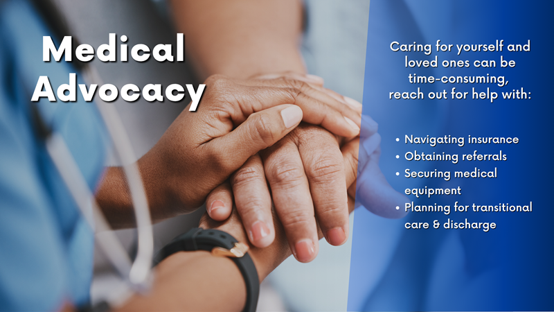 Get help navigating insurance, obtaining doctors referrals, securing medical equipment, and planning for transitional care and discharge.