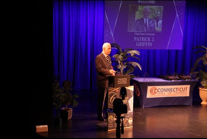 In his acceptance speech, Chief State’s Attorney Griffin extended congratulations on behalf of the Division of Criminal Justice to the eight inductees - Sean Reeves, Taj Amir Abdur Rahman, Roger Johnson Jr., Jerod Geter, Dr. Joyce Bellamy, Ruben Johnson-Santiago, Angel “Yummy” Hubbard and Dr. Kevin Paulin. He said he was honored to receive the award from the Connecticut Hall of Change.