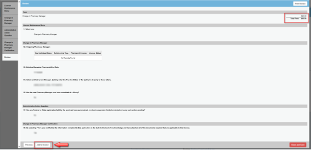 - Review your responses on the next screen, then click "Add to Invoice" to pay the fee.