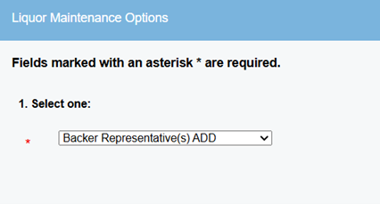 From the drop-down menu, select “Backer Representative(s) Add,”