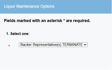 - I understand that I am responsible for any statements made by my representative to Liquor Control and for any documents submitted by my representation to Liquor Control. I understand that the penalty for any false statements made by my representative or delay caused by my representative may result in my inability to obtain a liquor permit or delay in the handling of my application. (Select yes or no from the drop down menu).