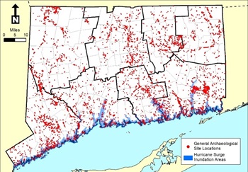 Prior to fieldwork, RCG&A archaeologists reviewed more than 1,000 sites recorded by the State Office of Archaeology in coastal Connecticut. They found that sites occupied during the Late Archaic Period (approximately 5,500 to 8,000 years ago) were significantly more common than expected, validating long-held but heretofore untested suspicions of archaeologists in Connecticut. Many of these sites are on or are near the shoreline, making them highly susceptible to threats from coastal erosion.