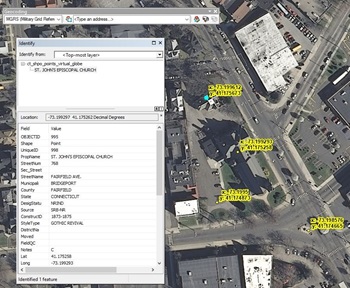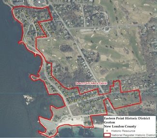 GIS layers (geospatial data that exists in layers tied to a digital map) were created for National Register, State Register, and Local Historic Districts as well as individual properties for the four coastal counties in Connecticut. Historic property addresses were geocoded and joined with existing databases created by the Connecticut Department of Transportation and the National Register of Historic Places to create a geographic information database that is viewable in Google Earth and other GIS programs.