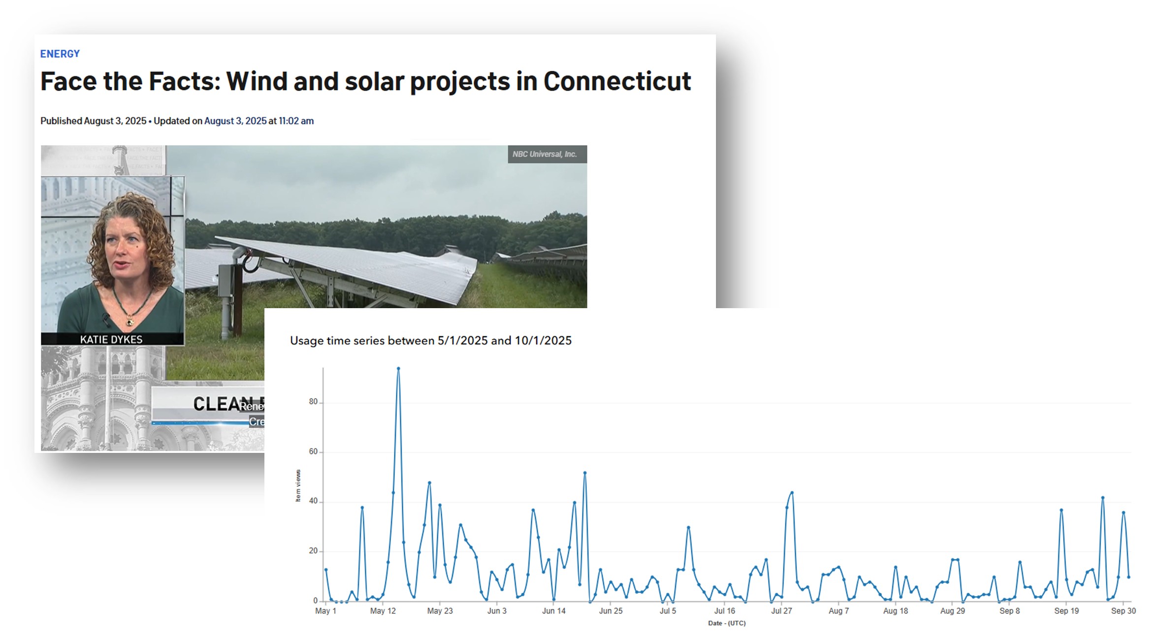In Q3 2025, DEEP gave CREST demonstration webinars for the Connecticut chapter of the American Planning Association on September 10, 2025 and “Sun” Day at CCSU on September 21, 2025. NBC interviewed Commissioner Dykes, where she discussed the CREST and its viewer metrics since its launch in May 2025. CREST has been accessed over 1,700 times, peaking when the tool went live and after each webinar and workshop.