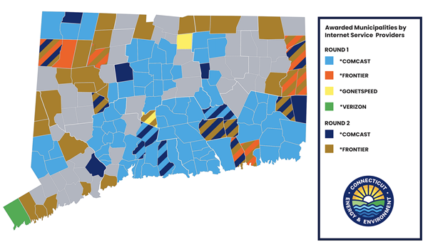 Approximately $10 million in grant funds have been announced for round two. These grants will support the build out of broadband infrastructure in 44 cities and towns, including 10 Distressed Municipalities, ensuring that more than 3,800 additional homes and small businesses will be able to access at least 100 Megabits per second of upload and download speeds. In most locations, gigabit symmetrical speeds will be made available, balancing the current needs of Connecticut’s communities while preparing for future innovations and emerging technologies.