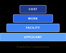 There are four distinct components to eligibility: Applicant, Facility, Work, and Cost.