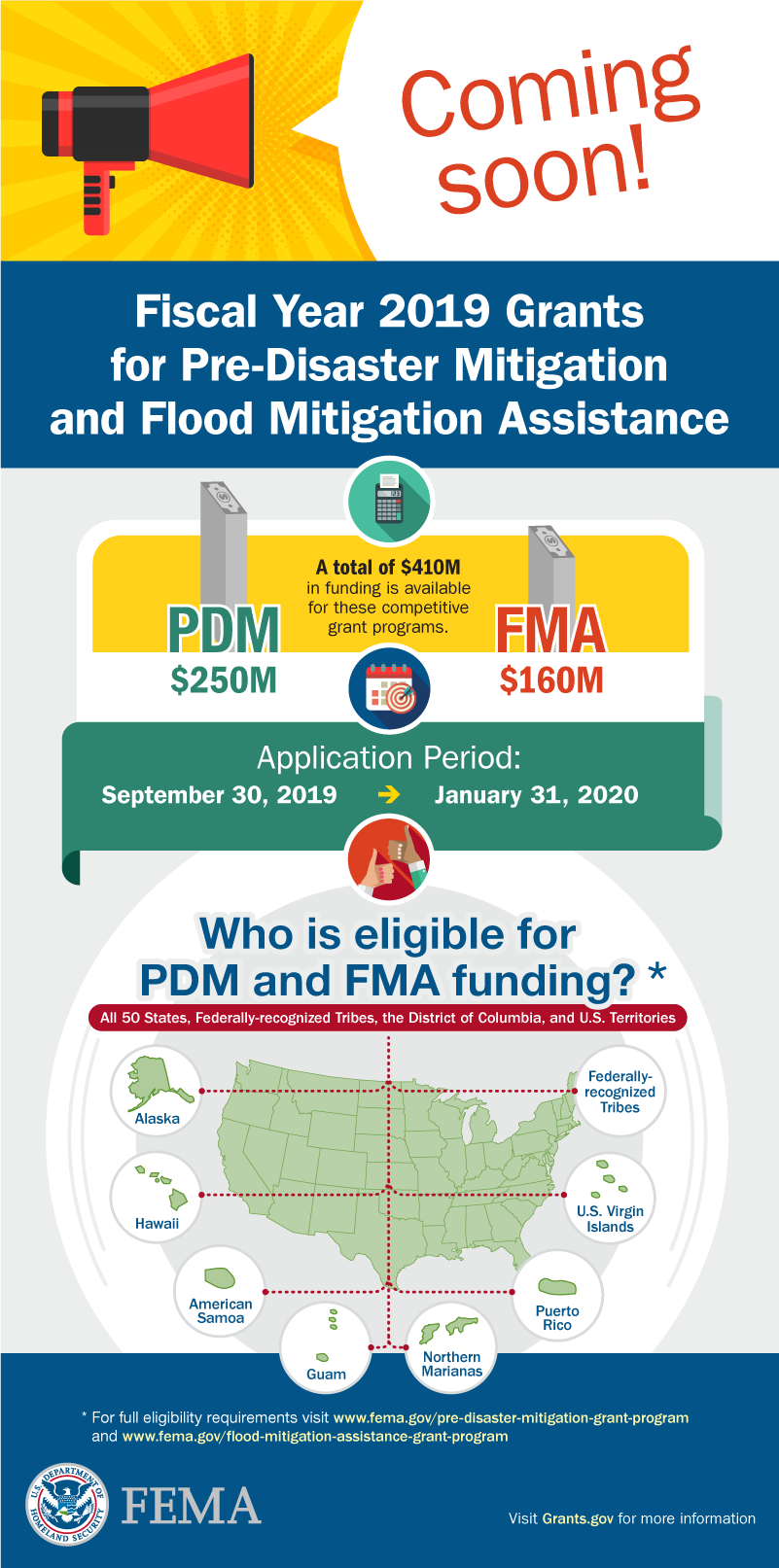 COMING SOON! FY 2019 Pre-Disaster Mitigation and Flood Mitigation Assistance Applications