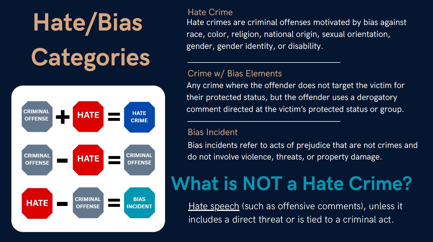 The Connecticut State Police Hate Crimes Investigative Unit reviews statewide hate crimes, hate incidents, and crimes with bias elements, providing guidance and resources for law enforcement, communities, and public and private organizations.