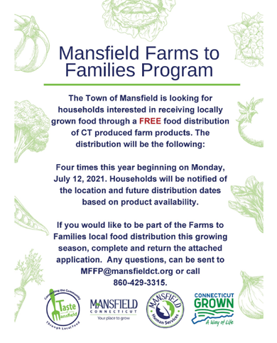 constrained, employed (ALICE) households with local farms and CT Grown foods. To accomplish this goal, the Town was awarded a 2020 Farm Viability grant to launch the Mansfield Farms to Families Program (MFFP).