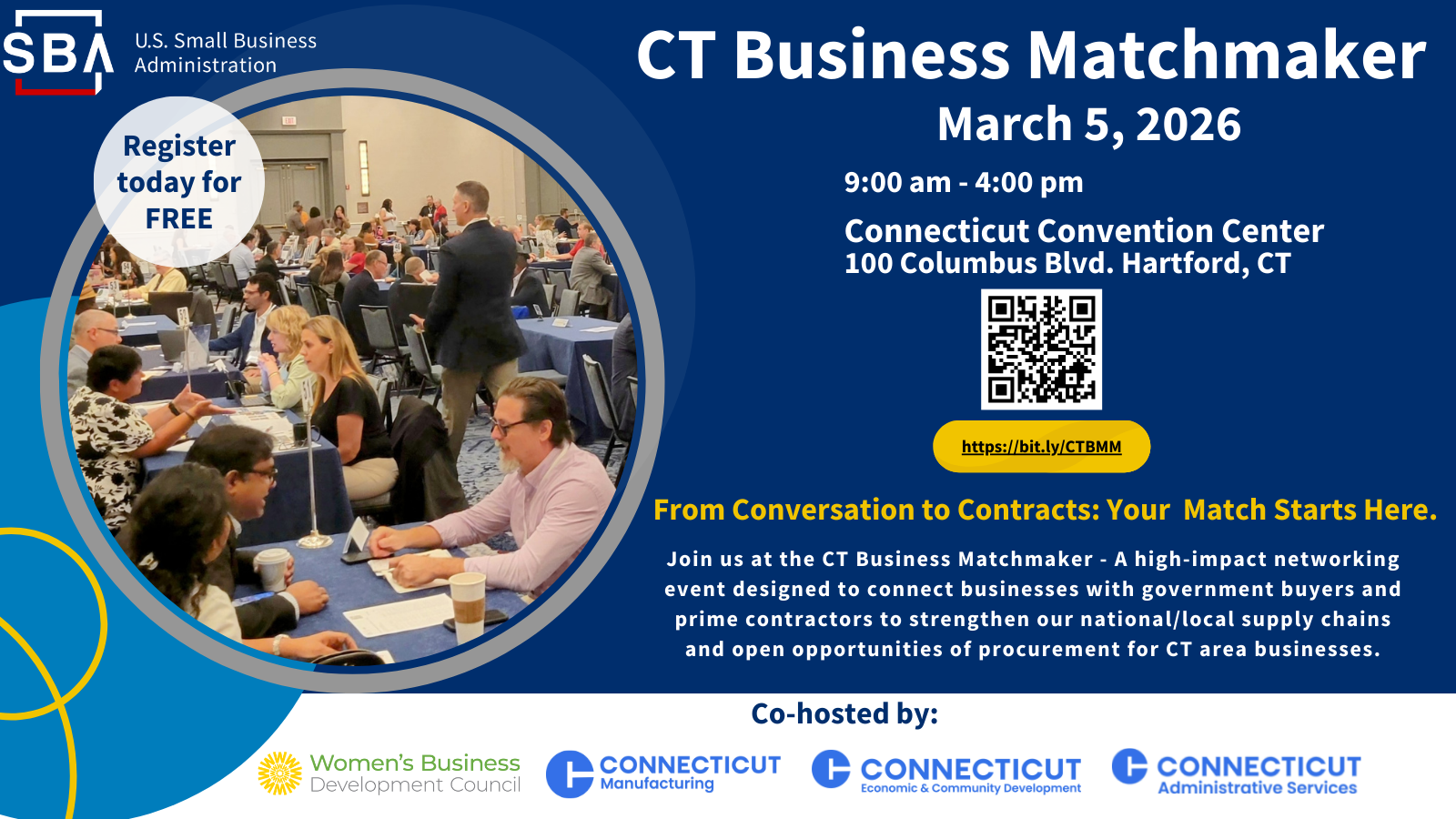 MCC will be hosting matchmakers, workshops, and one-to-one business development services to assist DBE firms. The services provided by MCC will be available to DBE firms certified by CTDOT. Firms can expect networking events, opportunity matchmakers, and workshops to learn new skills which may include: