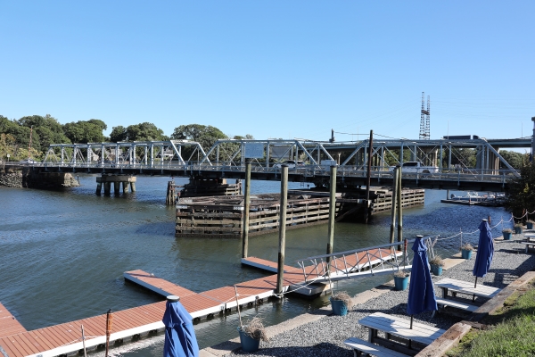 The historic Saugatuck River Swing Bridge (State Bridge No. 01349), also known as the “William F. Cribari Memorial Bridge” and the “Bridge Street Bridge” in Westport, carries Route 136 over the Saugatuck River and currently has a fair condition rating. It is individually listed on the National Register of Historic Places and is also listed as a contributing resource to the Bridge Street Historic District.