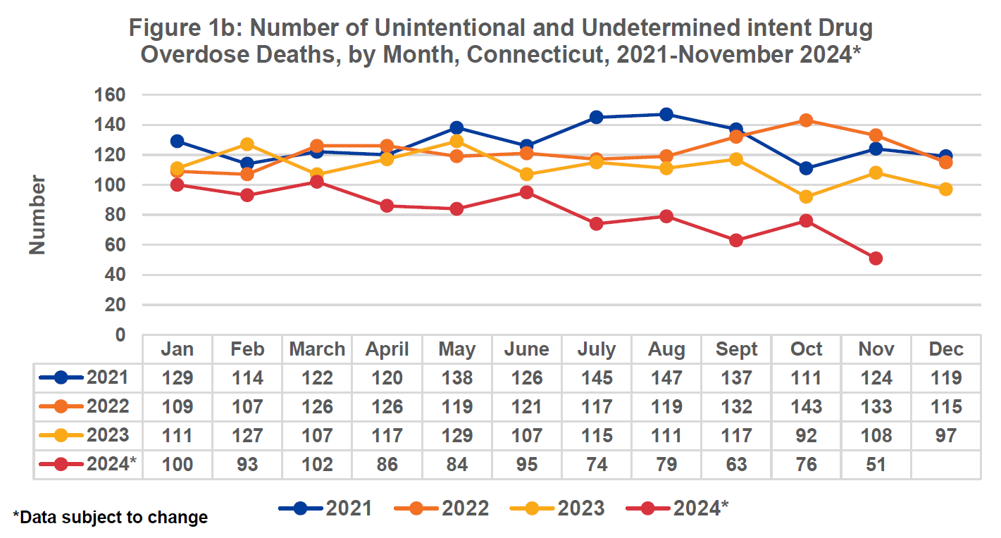 For more information on drug overdose death data, please see here for statistics posted by the Connecticut Office of the Chief Medical Examiner: