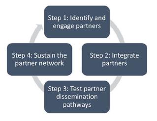 The Center for Disease Control and Prevention’s Access and Functional Needs Toolkit Integrating a Community Partner Network to Inform Risk and Communication Strategies has a four-step framework for how to work with the community and build a network. This is a four-step framework can help develop and disseminate effective risk communication messages for the whole community: