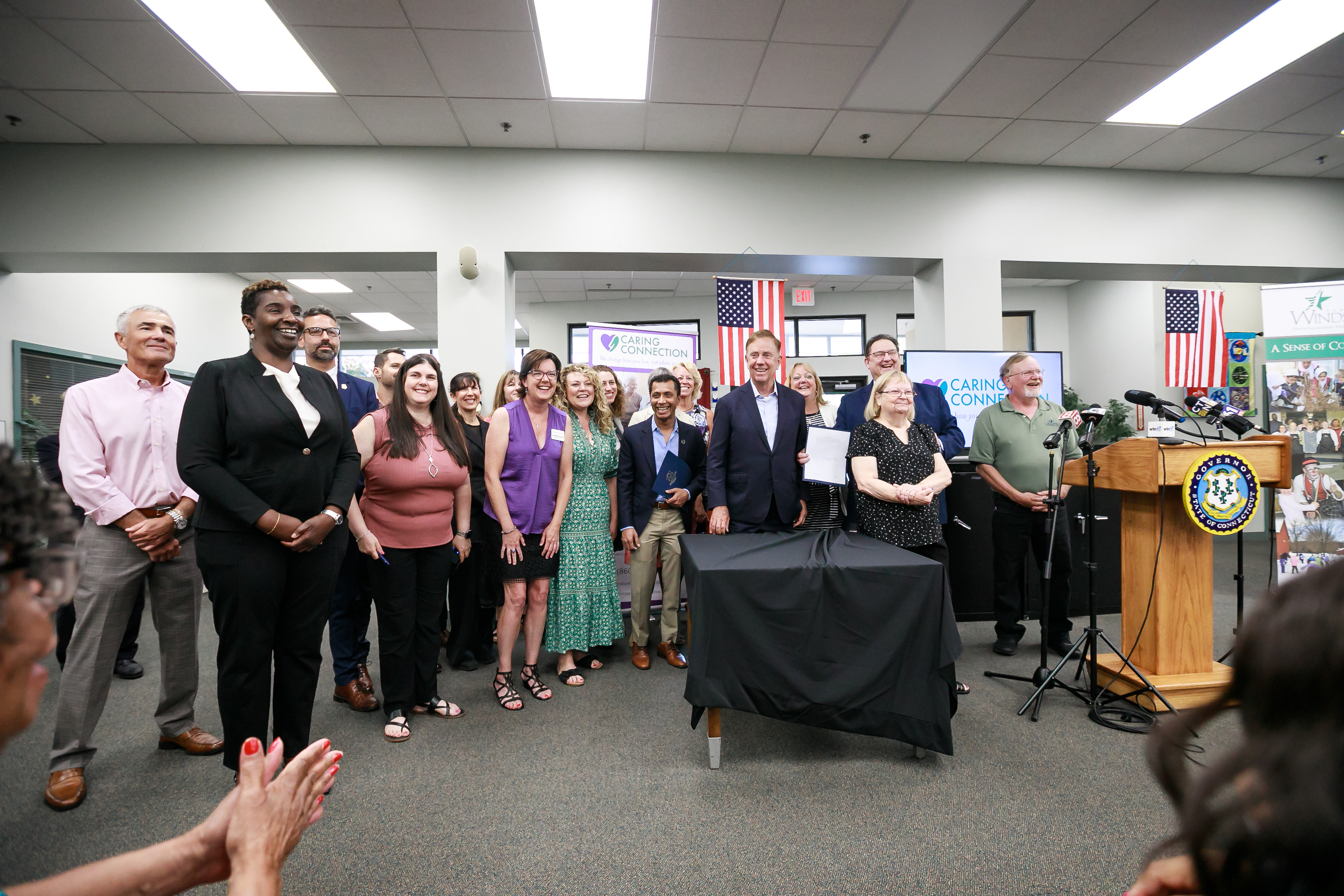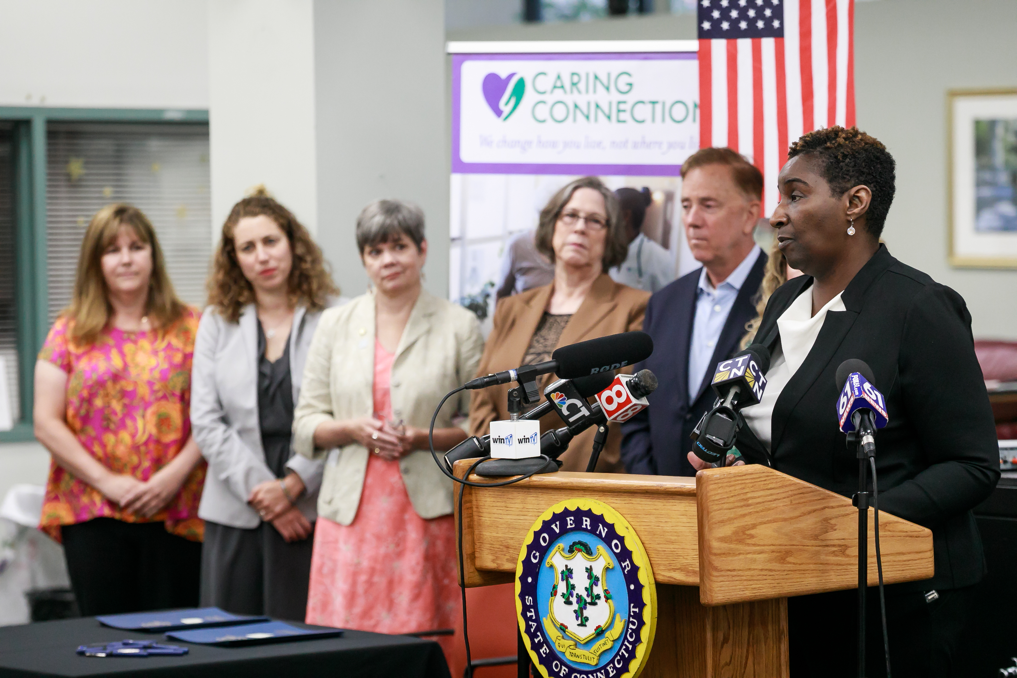 (HARTFORD, CT) – Commissioner Andrea Barton Reeves joined Governor Ned Lamont and various stakeholders today at Caring Connection in Windsor for a bill signing of HB 5781 and HB 6677. Both bills received unanimous bipartisan support in both the House and Senate.