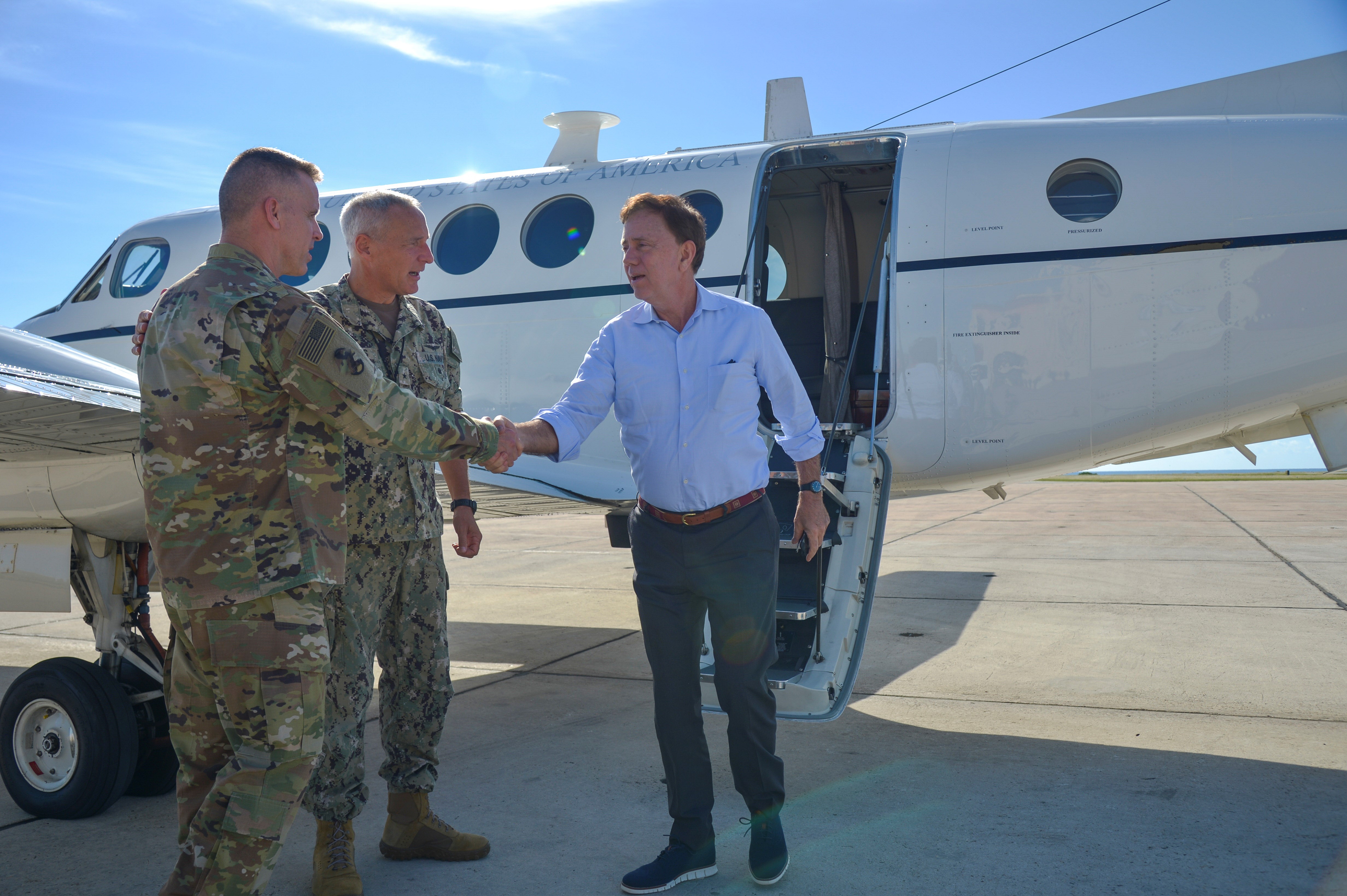 The governor and Connecticut National Guard leadership team touched down in Guantanamo Bay on Friday morning and returned to the mainland United States in the evening. During the visit, they met with members of the Military Police Company, which is based out of Westbrook, Connecticut. Its members have been deployed in Guantanamo Bay since March and have been providing the U.S. military with support for law and order operations.