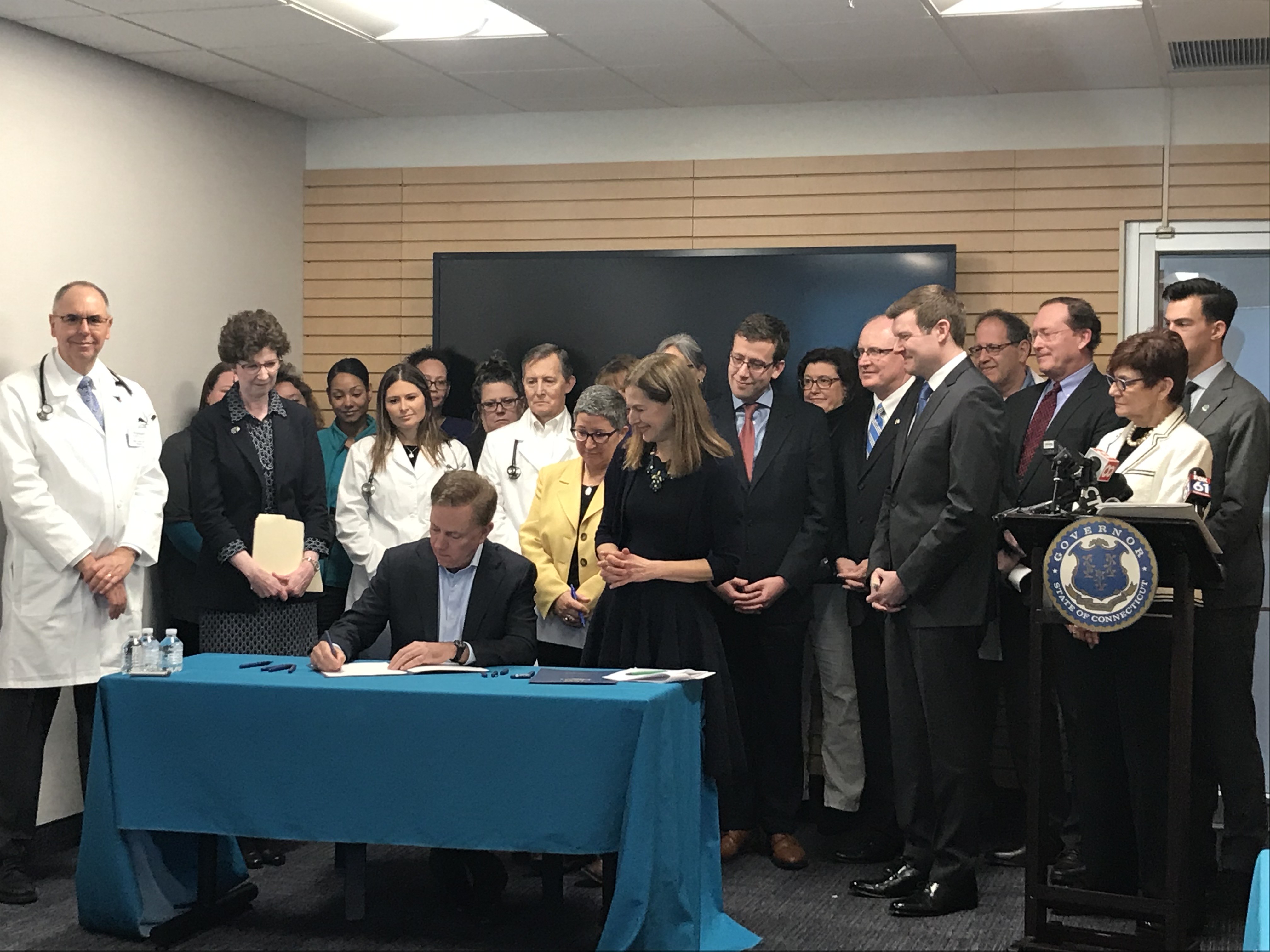 He signed the orders during a ceremony at the offices of ProHealth Physicians in Middletown, where he was joined by Lt. Governor Susan Bysiewicz, OHS Executive Director Vicki Veltri, DSS Commissioner Deidre Gifford, state lawmakers, and business and community leaders. ProHealth Physicians is an accountable care organization.