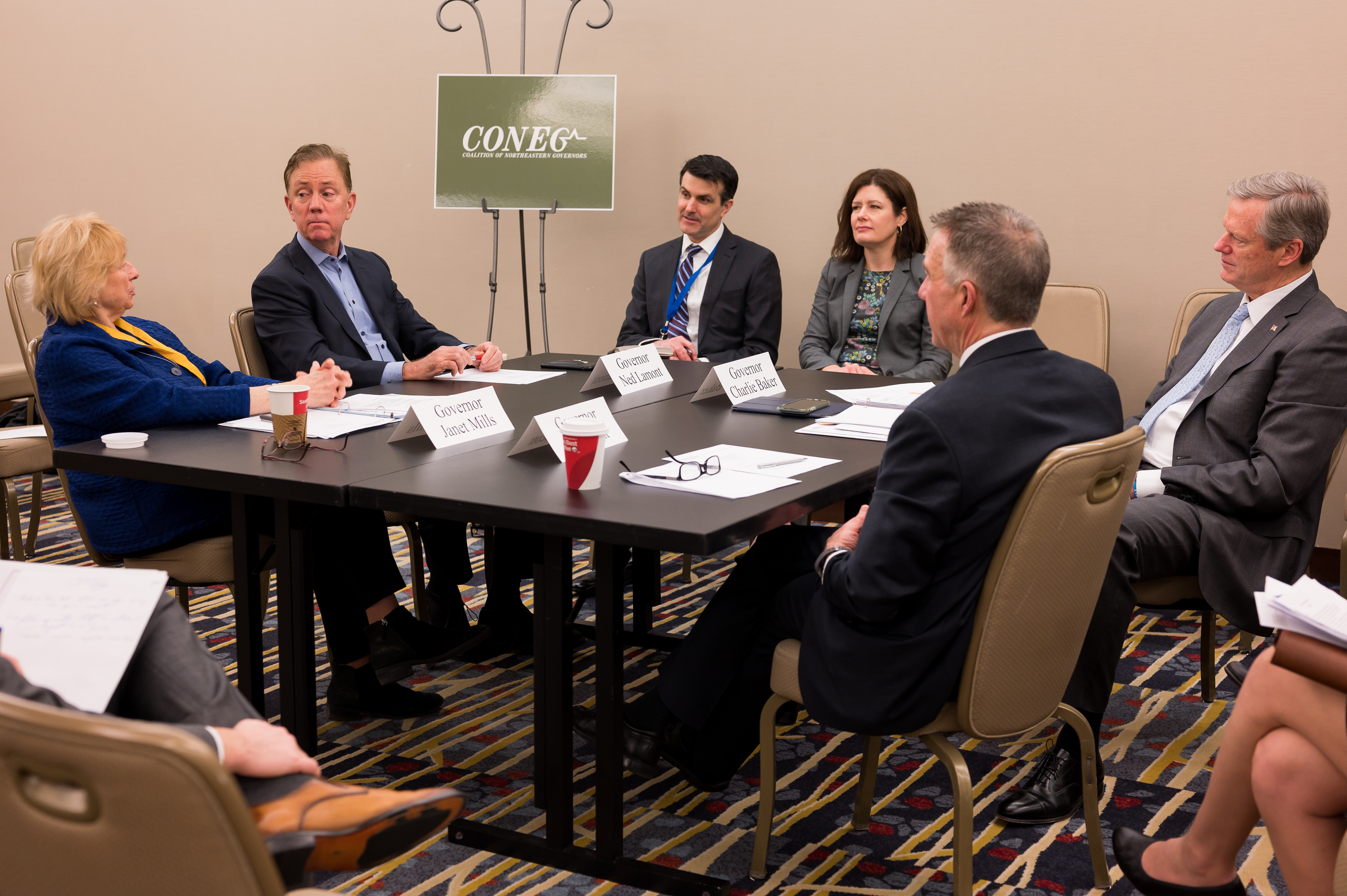 The organization works with governors, their staff, and policy advisors to examine current and emerging regional issues, develop effective solutions, and work together to benefit individual states as well as the region. Within the region, states use CONEG as a forum to share information, learn from each other about best practices, and identify opportunities for cooperation among the states. The position of chairman is a one-year term.