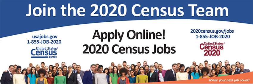 Applying for one of these jobs is simple. Just visit 2020census.gov/jobs or call 855-JOB-2020 and select option 3 for more information. Pay rates for field and clerical jobs can be found at 2020census.gov/jobs/pay-and-locations.