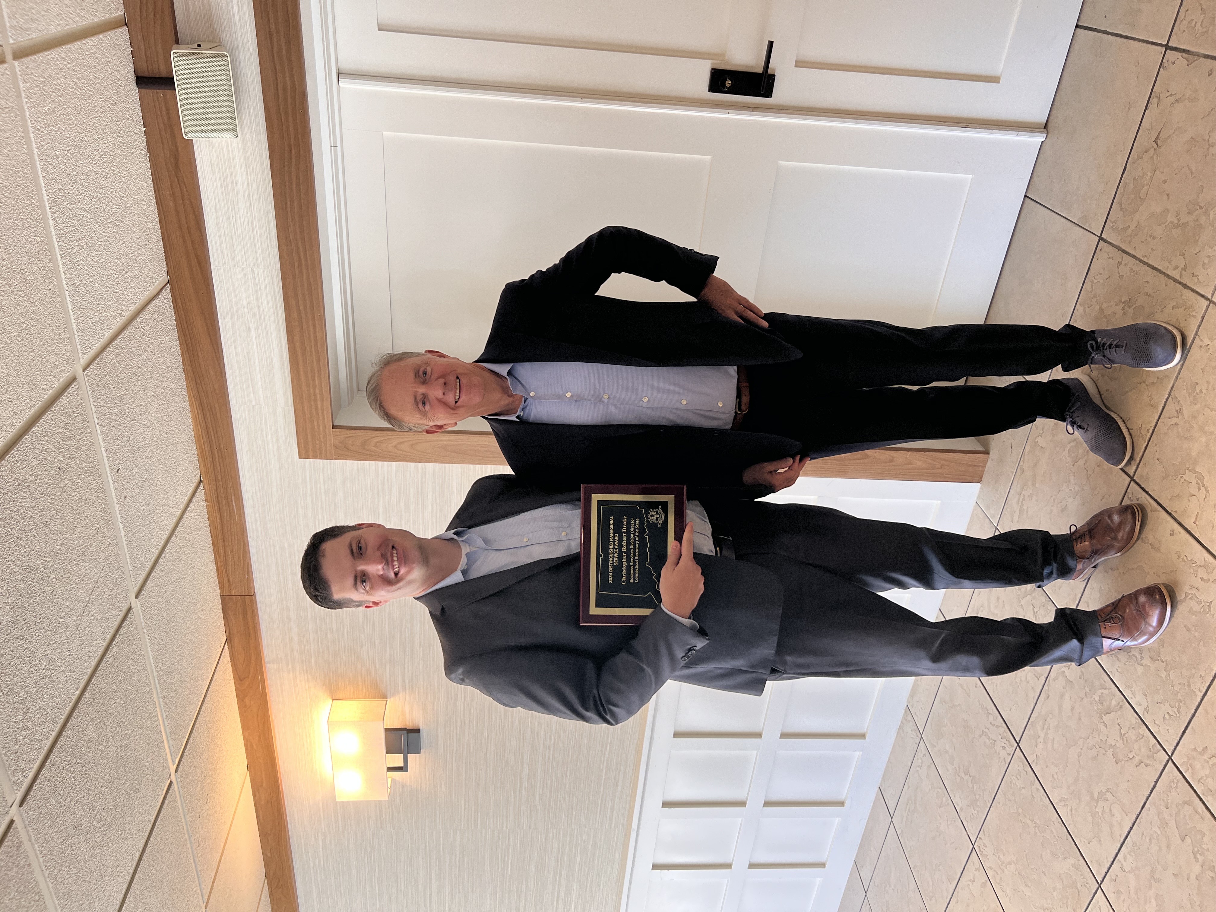 Chris Drake 2024 DMSA Recipient Chris Drake SOTS with Gov Ned Lamont 101124