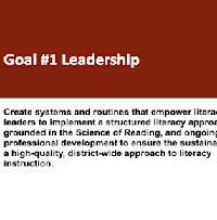 The first goal of these leadership plans focuses on leadership. The Superintendent establishes the Literacy Leadership Team, which develops the vision and mission statement and communicates with stakeholders. The team reconvenes on a consistent basis to review the plan and make any adjustments.