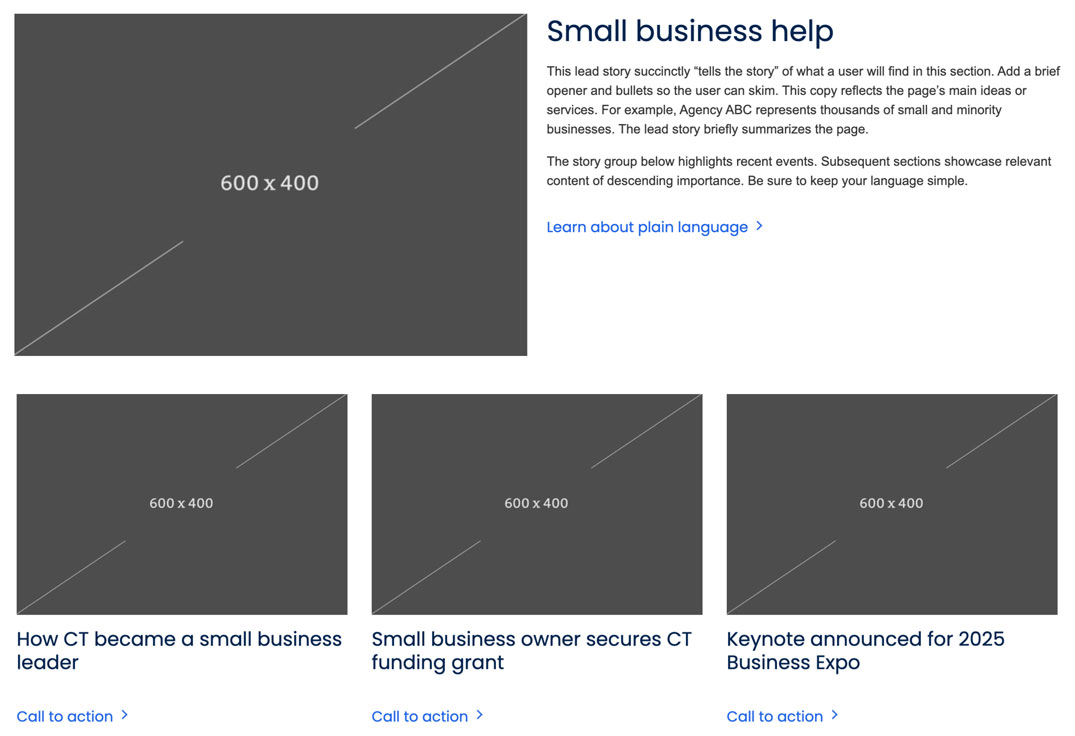 Use it to showcase related stories or services in one place. Story Groups help break up content while keeping the page easy to scan. Pick stories that support your main message.