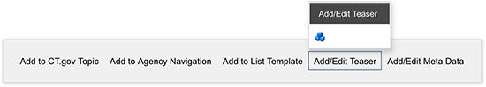 icon. - A menu bar will appear displaying a field to enter the Teaser. Enter a brief description of the page. Use keywords in the description that visitors may search to find this task/page. Try to keep description high level and less than two sentences, about 275 characters.