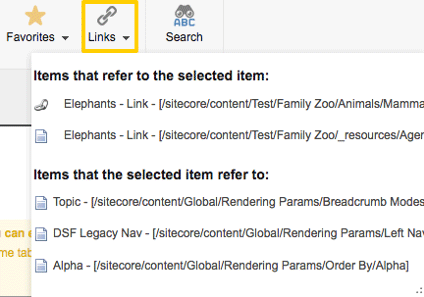 - Items that the selected item refer to – Items rendered on this page (images, document files, page components, etc.)